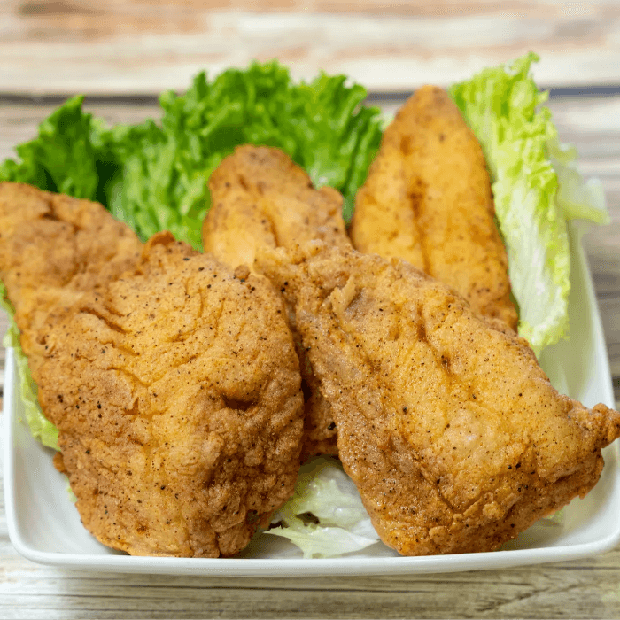 5pcs of Catfish Fillet with 2 small side orders + Dinner Roll. Your choice of Fried or Grilled (Additional charge for grill)